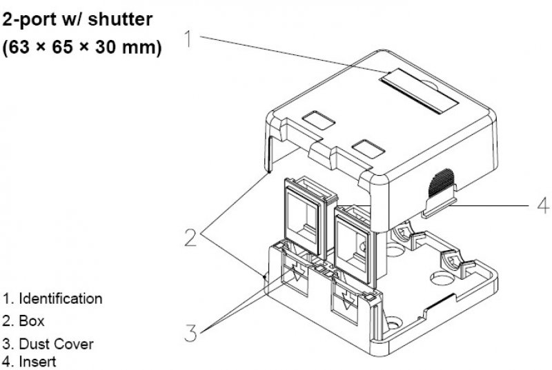 ZÁSUVKA U 2XRJ45 AP WH S CLONKOU A POPISKOU