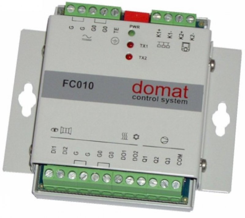 Regulátor fancoilu, komunikativní 2 x DI (přítomnost, okno), 5 x DO triak 24...230 V st pro term. ventily (topení, chlazení) a třístupňový fancoil, kom. 1x Modbus slave / RS485 pro nadřazený systém, 1x Modbus master / RS485 pro ovladač UC010| Značka: | DOMAT | P/N: | FC010 |