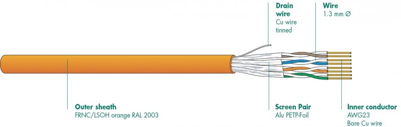 Kábel C6 U/FTP FRNC/LSOH SOL AWG23 Dca OR 1000m Uninet 6002| Plášť / Povrch: | LSOH(LSZH‚LSNH) |