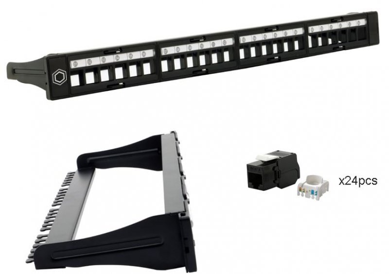 PATCH PANEL L 19" C6A UTP 24P 1U BK SAMOREZ.KEYSTONY ZADNÝ KÁBLOVÝ MANAŽMENT| Konštrukcia 1: | UTP |