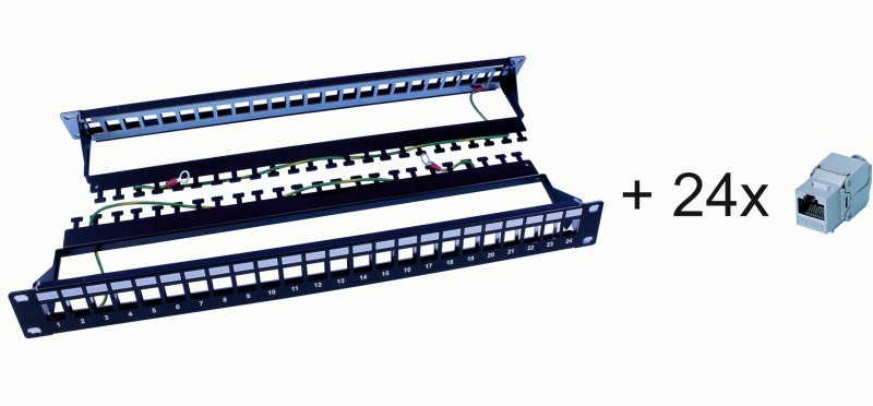 Patch panel L 19" C6A FTP 24p 1U BK modulárny ZKM RoHS + 24x keystone C6A| Konštrukcia 1: | FTP |