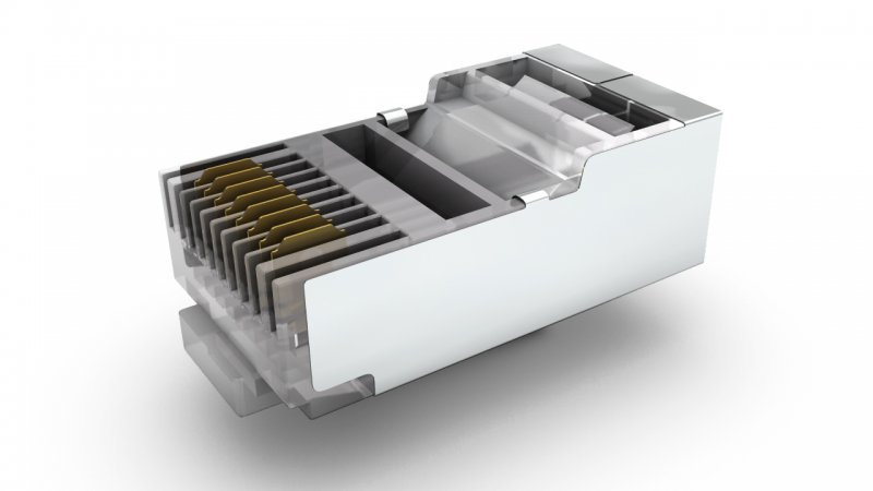 Konektor C6 STP 8p8c STR RJ45 2-bodové nože 50u' pozlátenie H4 typ (TRANSPARENT) RoHS| Konštrukcia 1: | FTP LANKO |