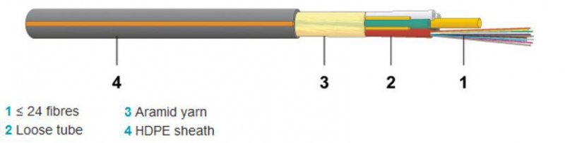 Kábel FO 2x12xE9/125-G.652.D A-DQ(ZN)2Y MLT BK micro wbKT Fca| Plášť / Povrch: | PE |