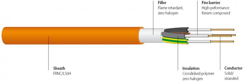 Kábel silový (N)HXH FE180 E90 1x95 RM Cu FRNC/LSOH 600V/1KV Pyrofil « Keram OR| Plášť / Povrch: | LSFROH(HFFR‚ FRNC) |