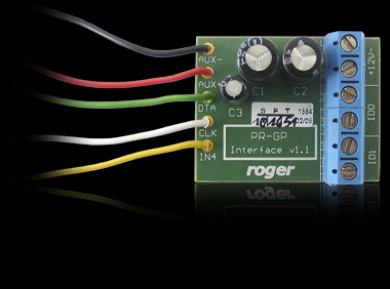 modul na pripojenie F7, F10, GP60A a GP90A ku kontrolérom PRxx2, upravuje logickú úroveň výstupných signálov čítačky na vstupy kontroléra, izoluje výstupy čítačky od rušení| Značka: | ROGER | P/N: | PR-GP |