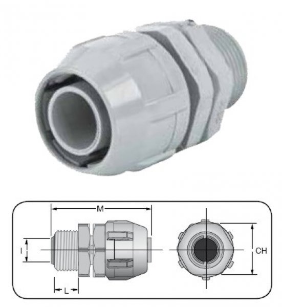 Vývodka GAS 1/2" PVC MF-MG pre flex.rúrku DI12mm| Výkon / Kategória: | IP 67 |