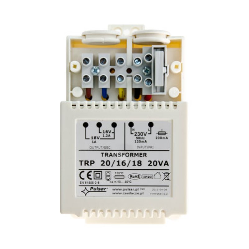 transformátor 230 V AC/16/18 V AC (20 VA), kryt z ABS plastu, IP20| Značka: | PULSAR | P/N: | AWT 050 |