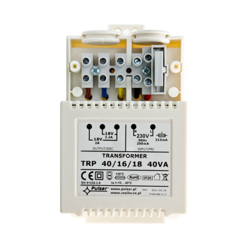 transformátor 230 V AC/16/18 V AC (40 VA), kryt z ABS plastu, IP20| Značka: | PULSAR | P/N: | AWT 150 |